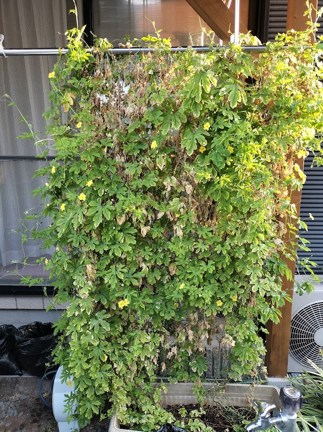9月末を迎え、猛暑を頑張ってきたゴーヤの姿です。