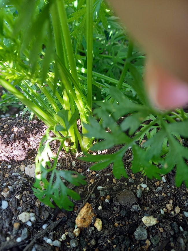 今度は奥の列のニンジンの1回目の間引きをすることにしました!