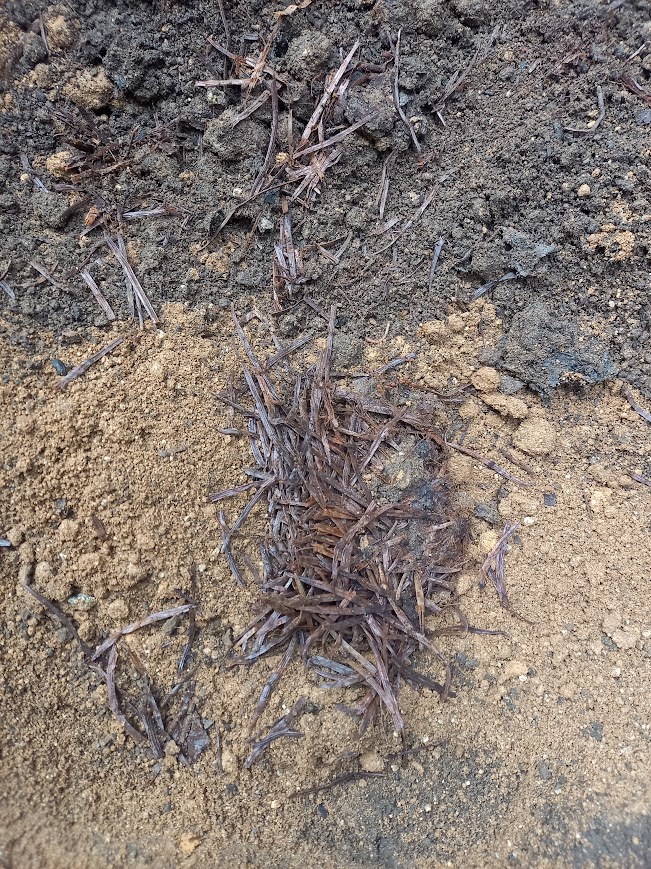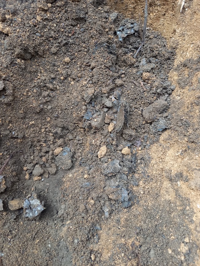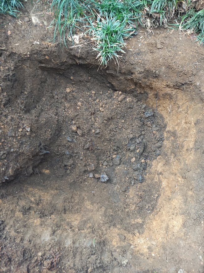 そして掘っても掘っても土です。たまに石が出てきたり少し固まった葉らしきものがあったり。