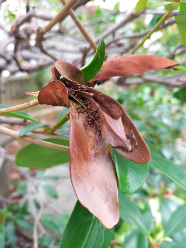 そのくっついた葉を開くと茶色の粒々がたくさん出てきました💦