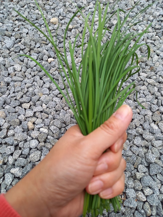 初収穫したニラ