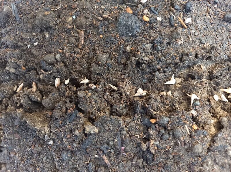 私おまめちゃんは、この時は一晩水に浸すと発芽しやすいことを知らなかったので、浸さないで蒔いてしまいました💦