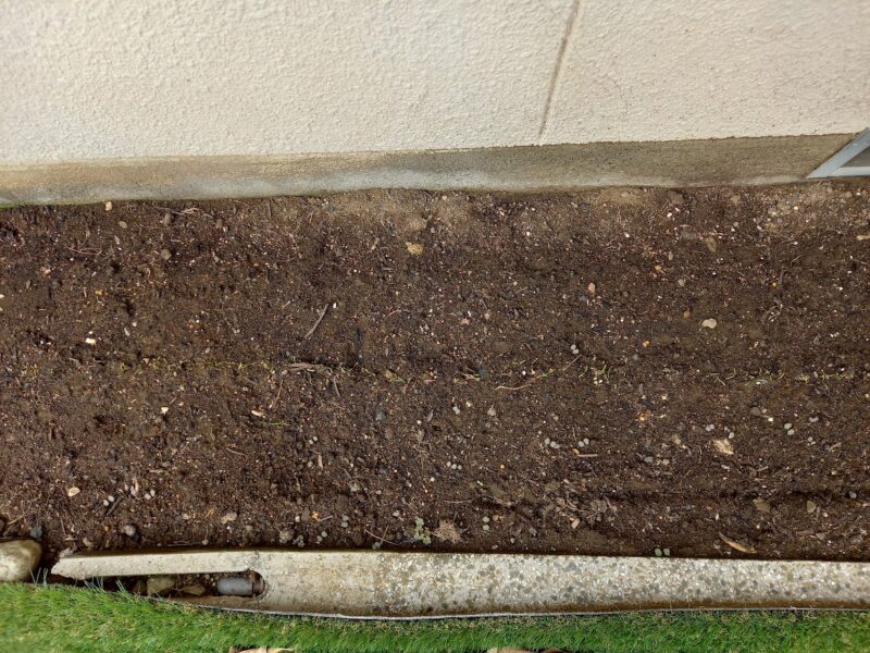 私おまめちゃんが種まきした場所は、前回はグラジオラス(アヤメ科の球根植物)が植えてあった所で、土作りの時に球根は全部掘り起こしておきました。