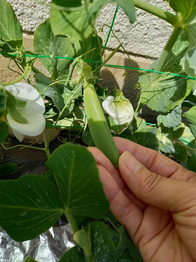 スナップエンドウは花が全て実になるという嬉しい情報を聞き、毎日眺めるのを楽しみにしています!