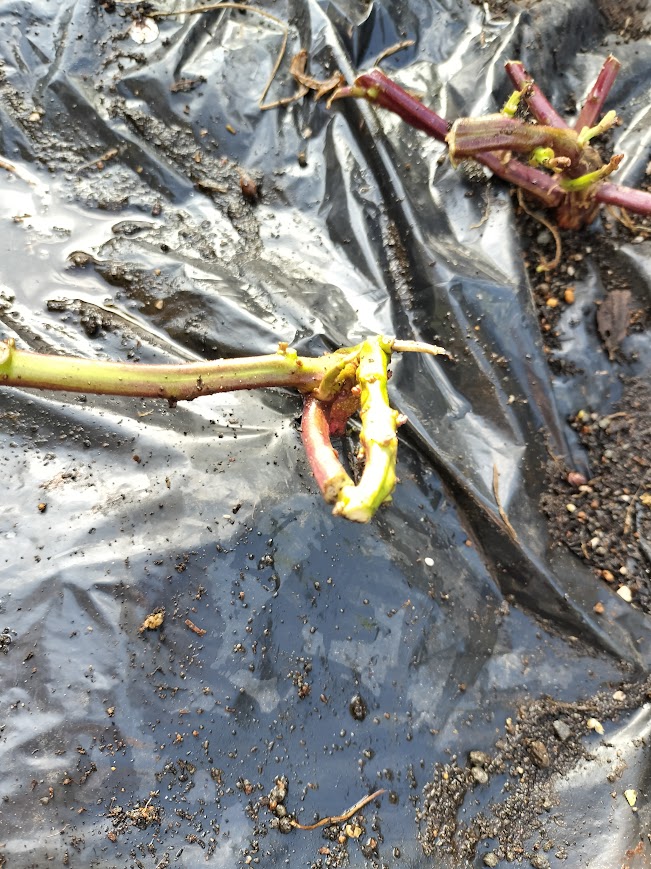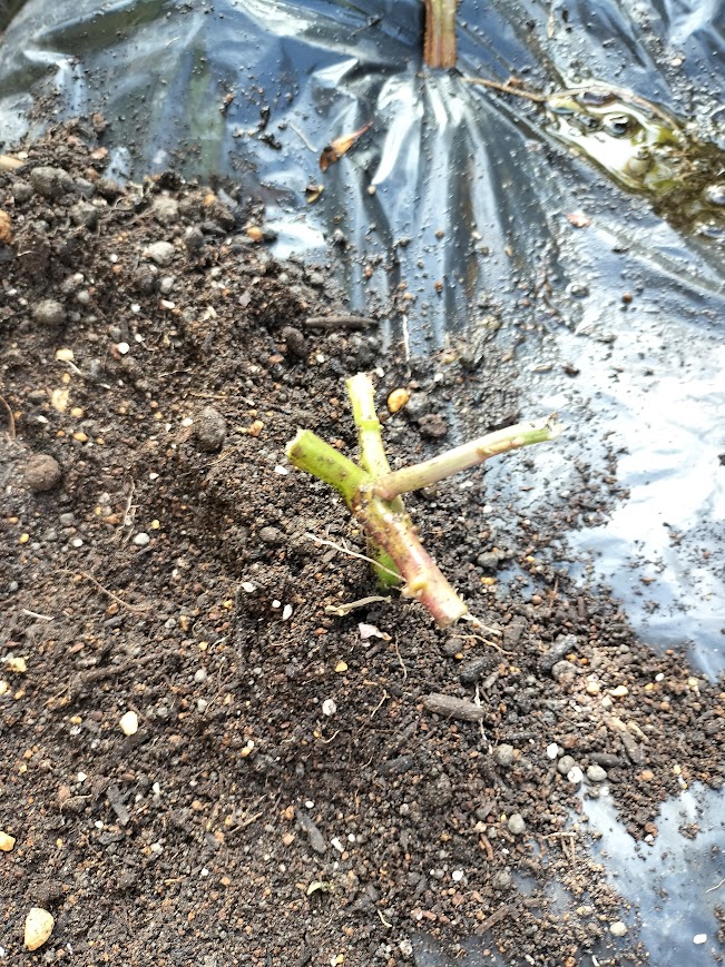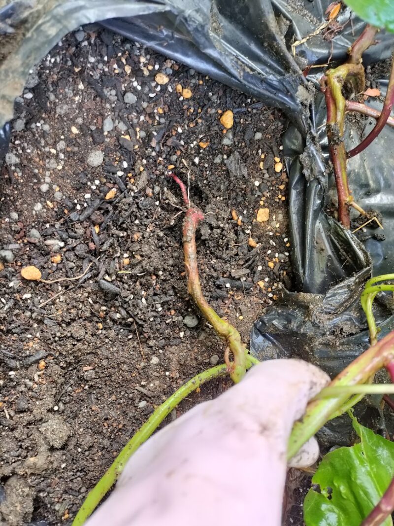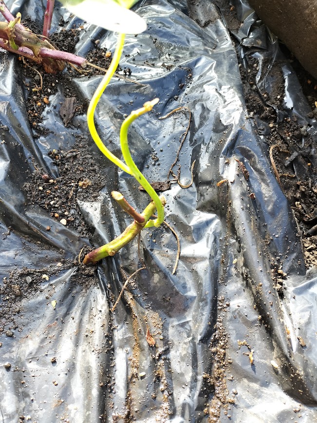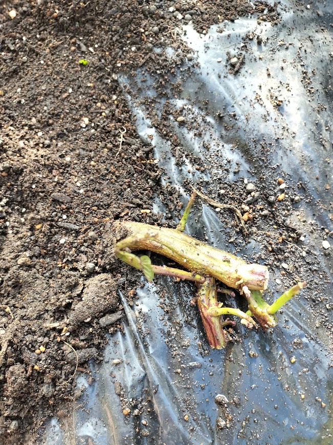 ヌルヌルした部分を洗い流して茎がしっかりしているつるを選別し、ダメ元で植え付けてみることにしました。