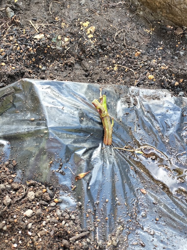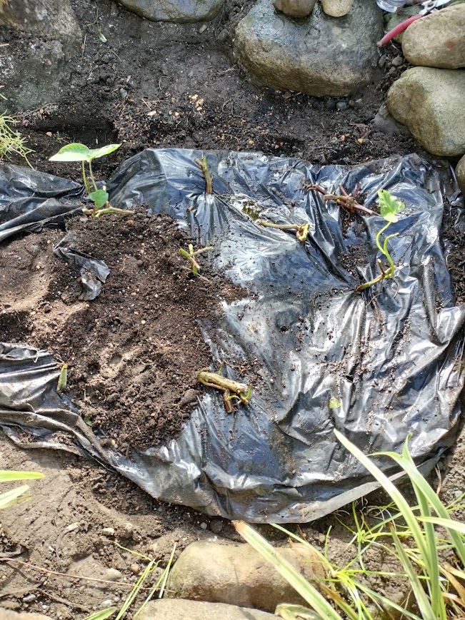 植え付け場所に黒マルチシートをしてくれる嬉しいな!
