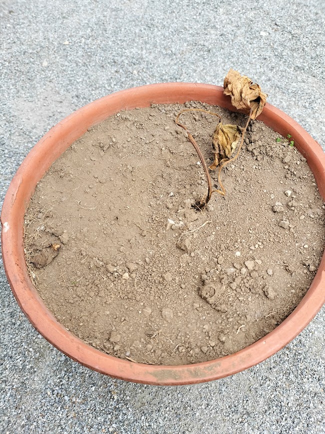 引き続き植え付けた時と同様、あまり日が当たらない軒下に置いておいたのですが…。