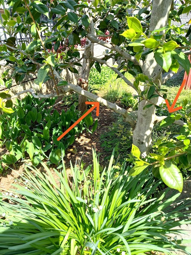 実はこの枝…ツバキの周りの草むしりをしていると非常にジャマなのです…。