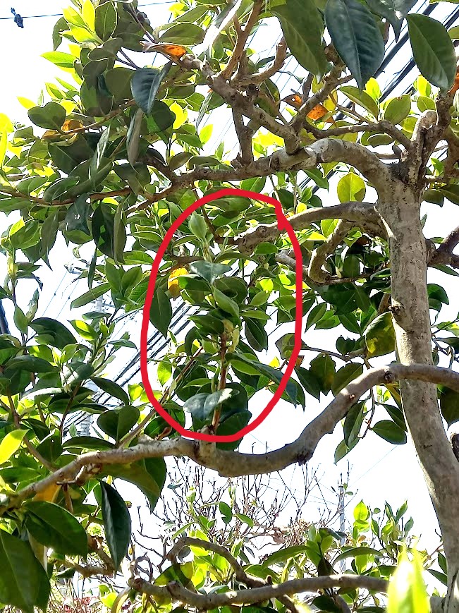 その後、年が明けた2026年2月中旬にチュウゴクアミガサハゴロモの卵が付いている枝を剪定しました。