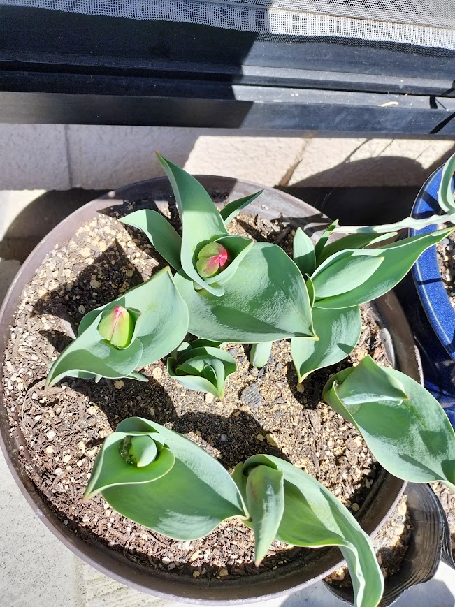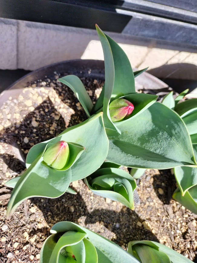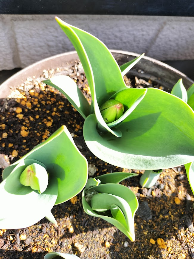 中心の2個はまだのようですが、大きくなっている外側のチューリップ アウトフィットから咲きそうですね!