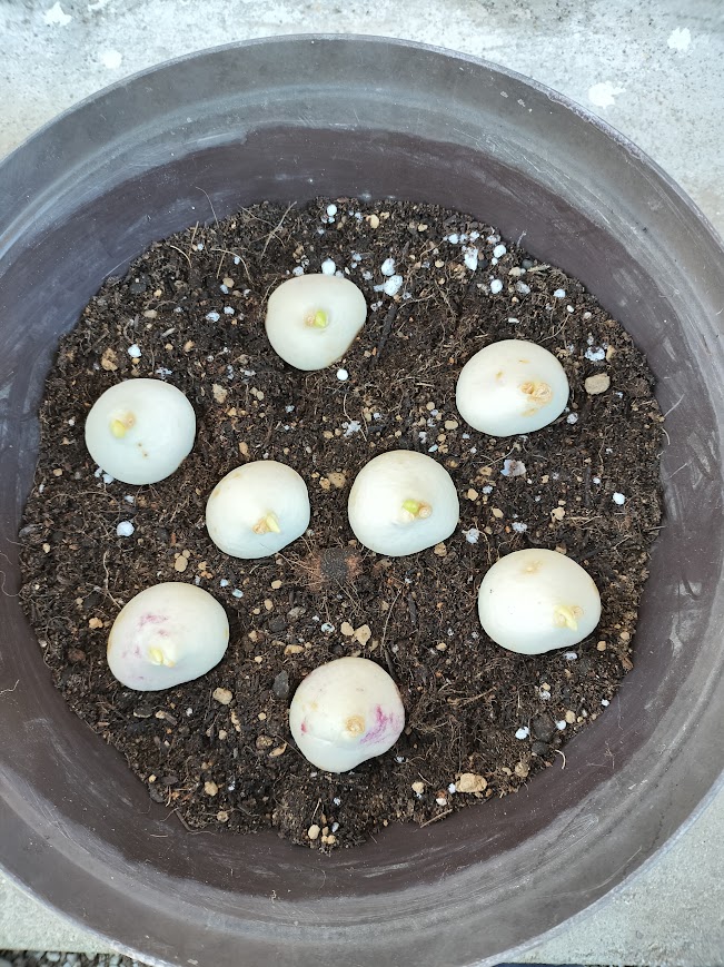 8球植え付けた中で2つ芽が出てきました!
