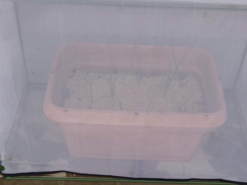 そこで冬の冷たい風で弱らないように、防虫ネットで覆ってみました‼